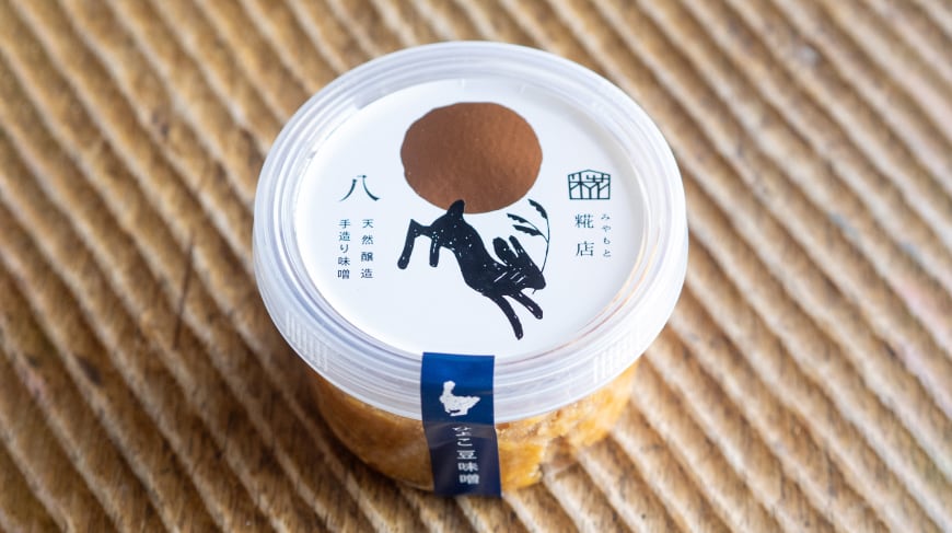 「八 ひよこ豆味噌」は、従来の大豆の代わりにひよこ豆を使用した新しい形の味噌です。麹は20割と通常の倍の量を贅沢に使用し、塩分は8%に抑えられています。この絶妙な組み合わせにより、旨味と甘み、香りが際立つ仕上がりになっています。